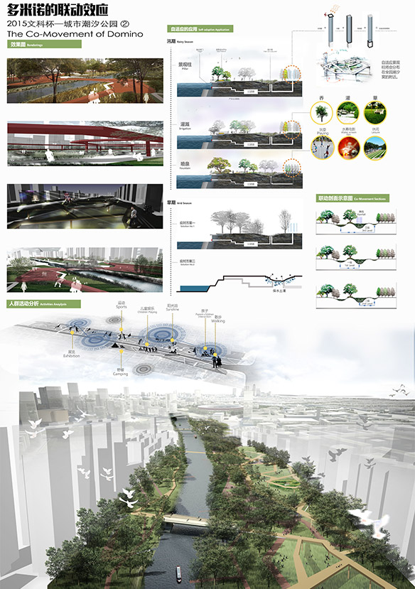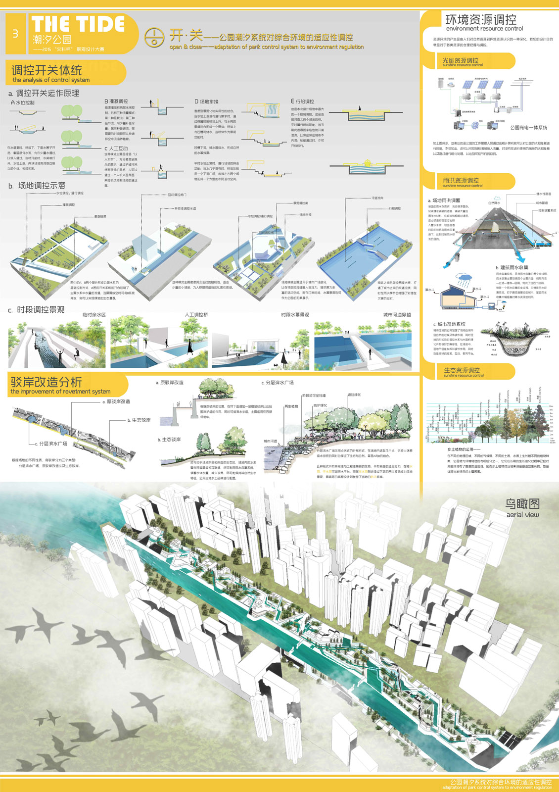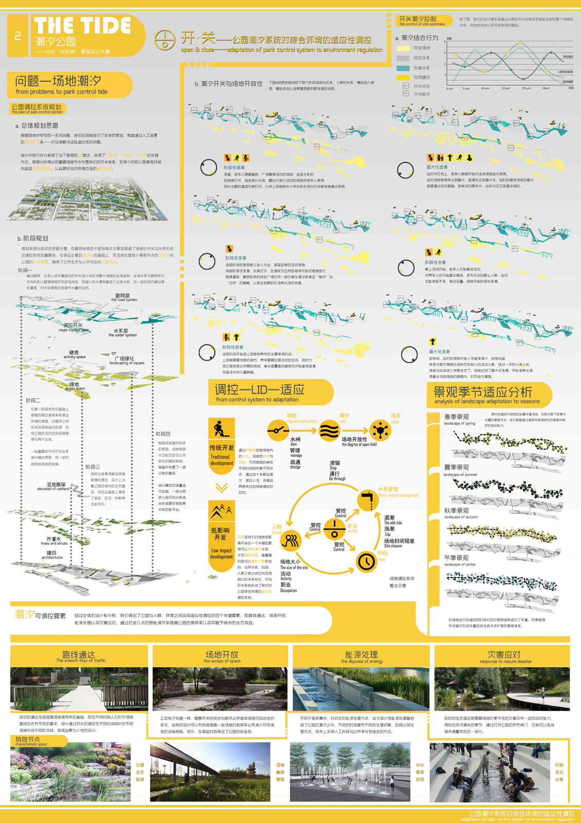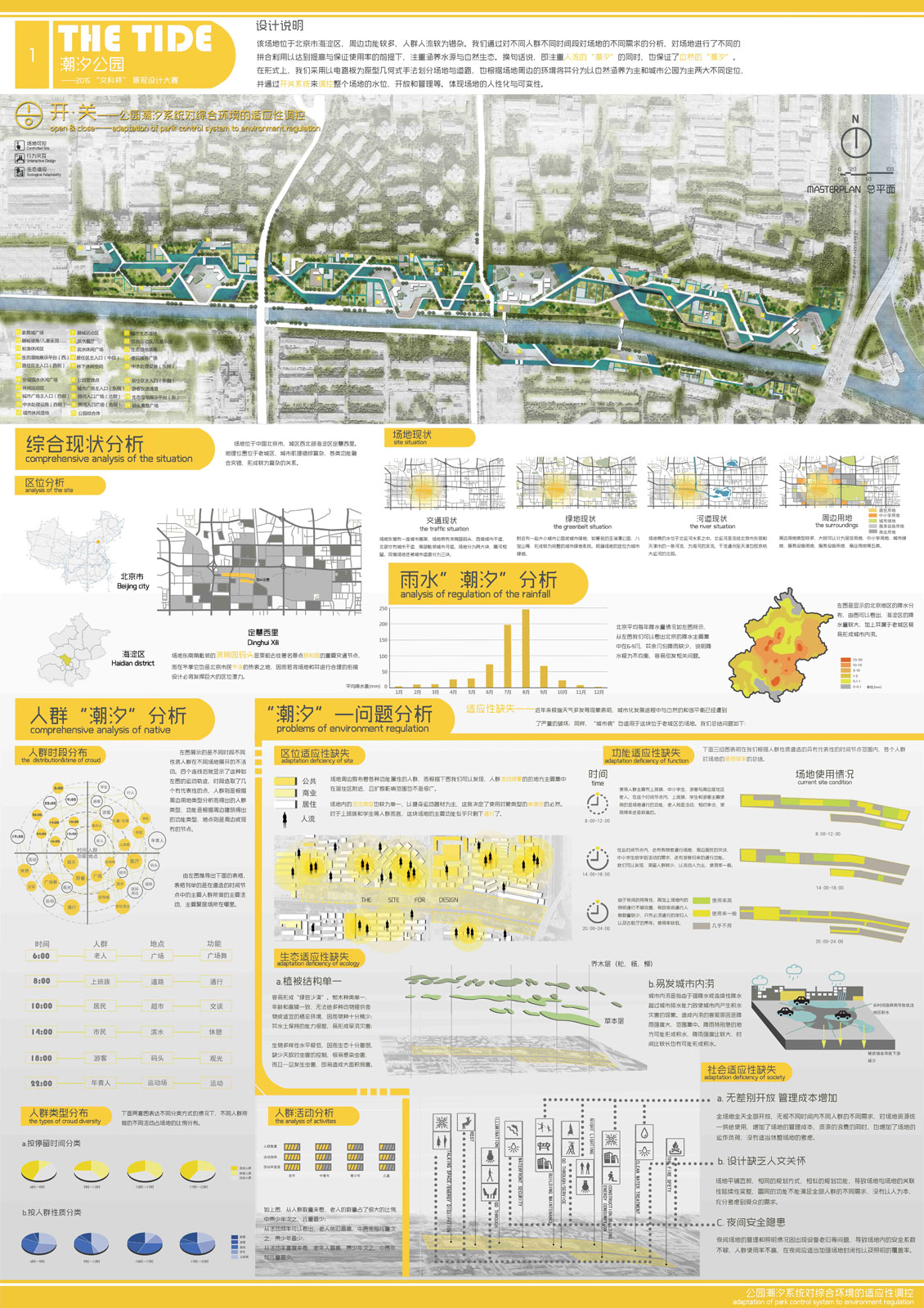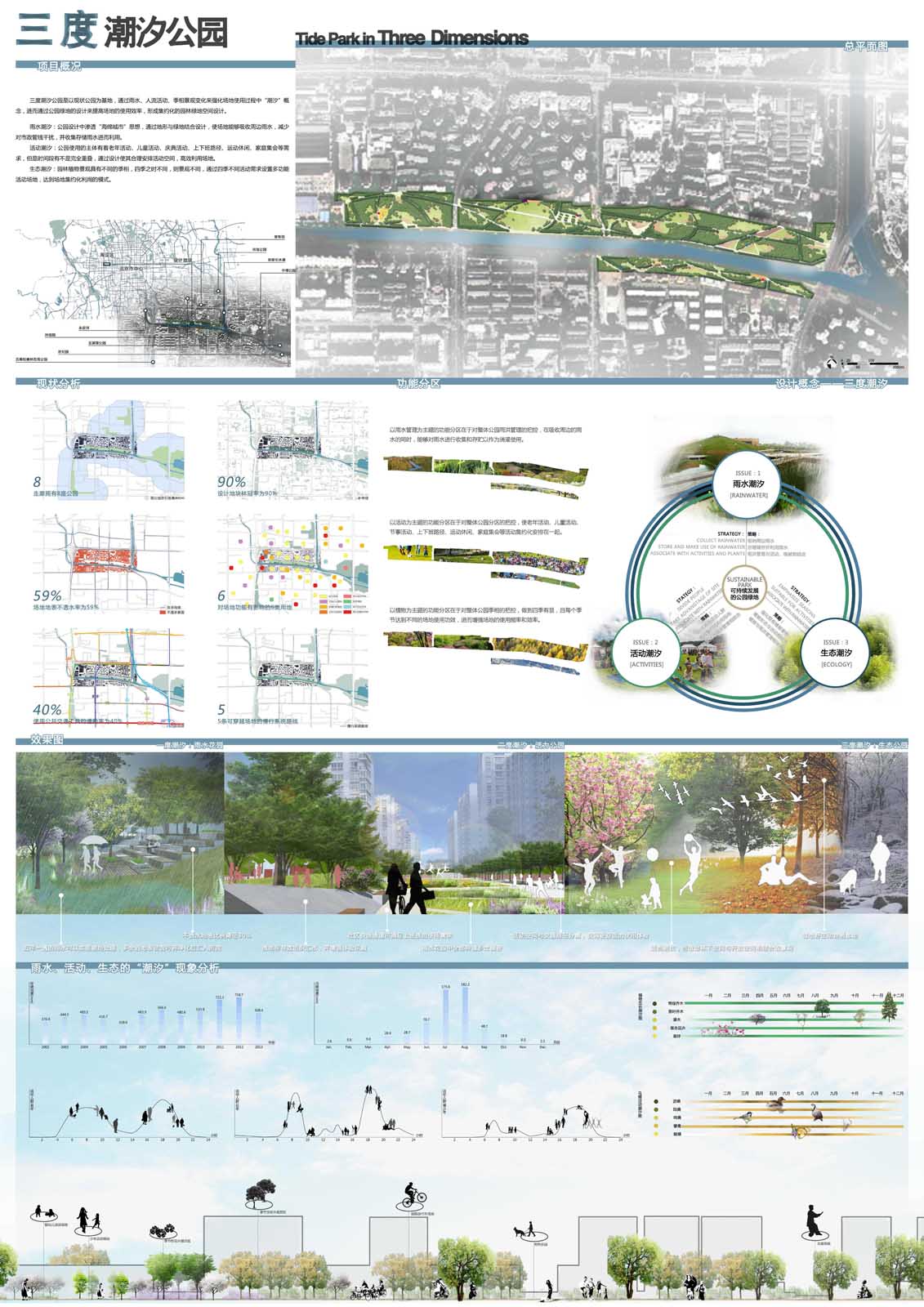 大赛顺应海绵城市的概念,以景观设计表达:当雨季来临时,公园可以有效吸水、集水、蓄水,以保证城市内不致发生内涝;旱季时可以将储蓄的水“释放”并加以利用,以改善城市微气候。要求选择一个角度,结合场地周边人文环境需求,以“合理、便捷、高效”为核心,设计一个具有高使用效率的城市潮汐公园,并给出相应的管理策略。本届大赛共有来自全国各高校的300多个设计小组、总计达870名参赛者报名参加。