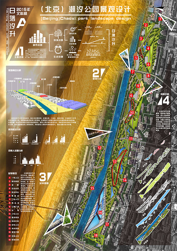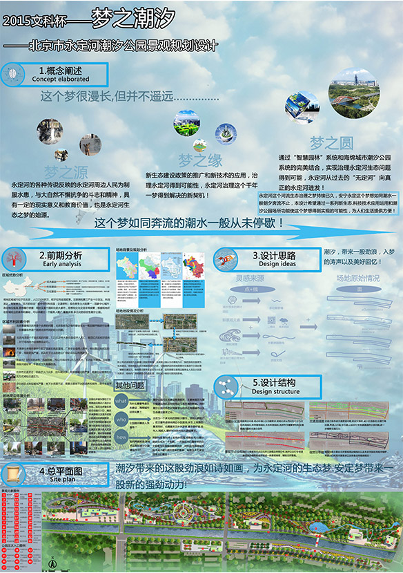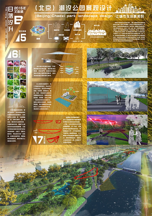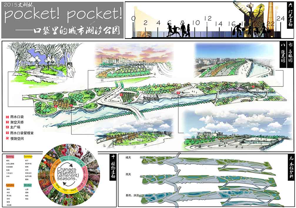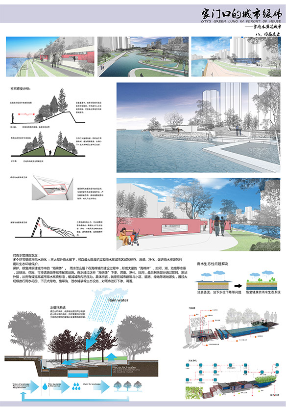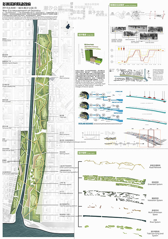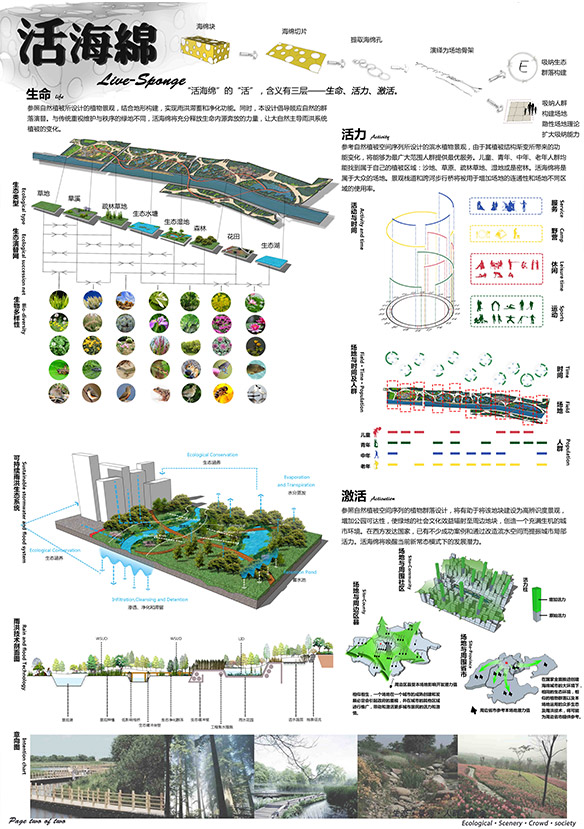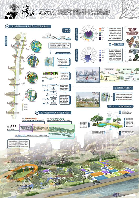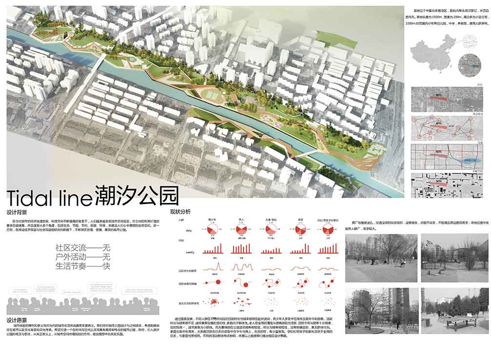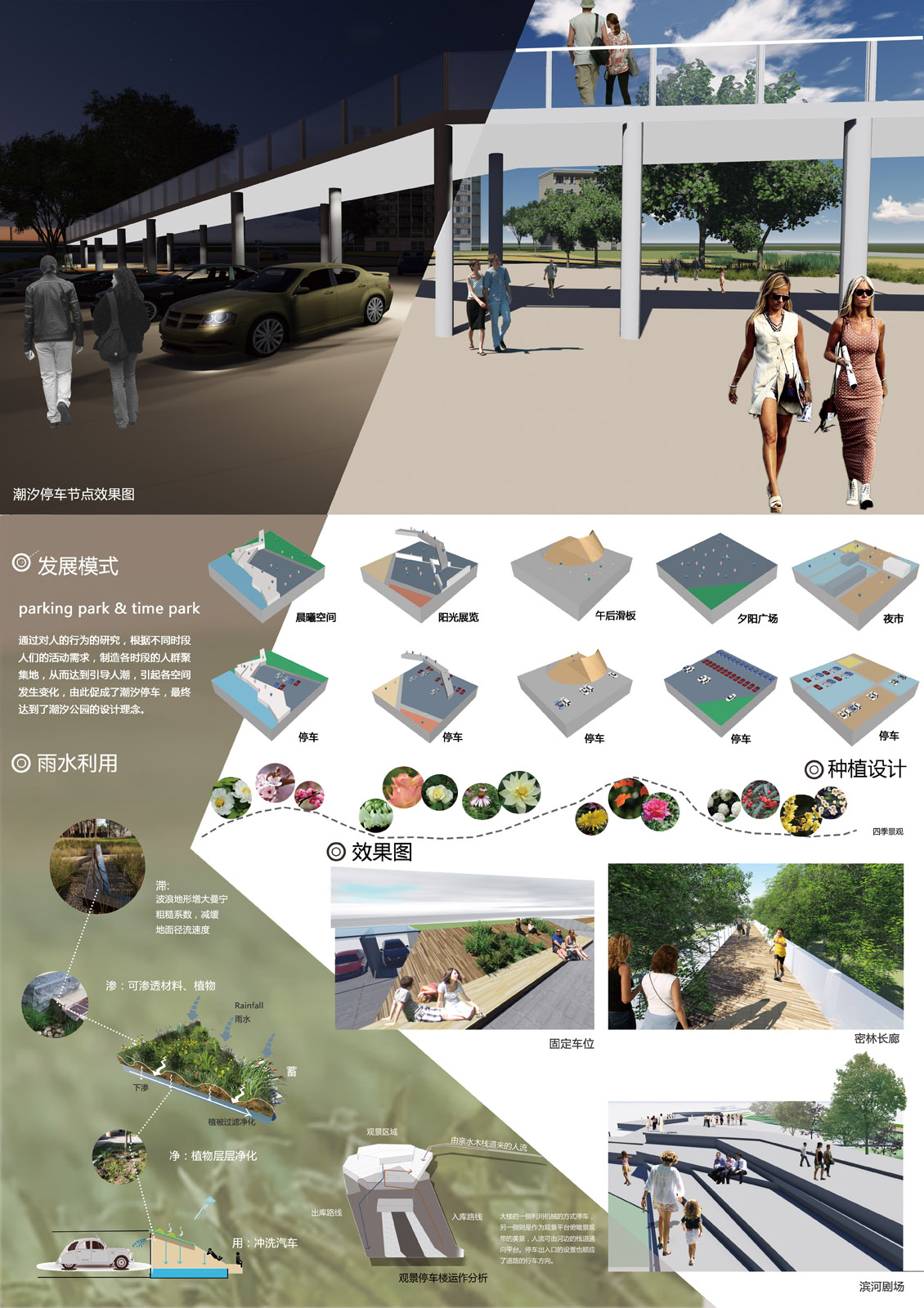大赛顺应海绵城市的概念,以景观设计表达:当雨季来临时,公园可以有效吸水、集水、蓄水,以保证城市内不致发生内涝;旱季时可以将储蓄的水“释放”并加以利用,以改善城市微气候。要求选择一个角度,结合场地周边人文环境需求,以“合理、便捷、高效”为核心,设计一个具有高使用效率的城市潮汐公园,并给出相应的管理策略。本届大赛共有来自全国各高校的300多个设计小组、总计达870名参赛者报名参加。