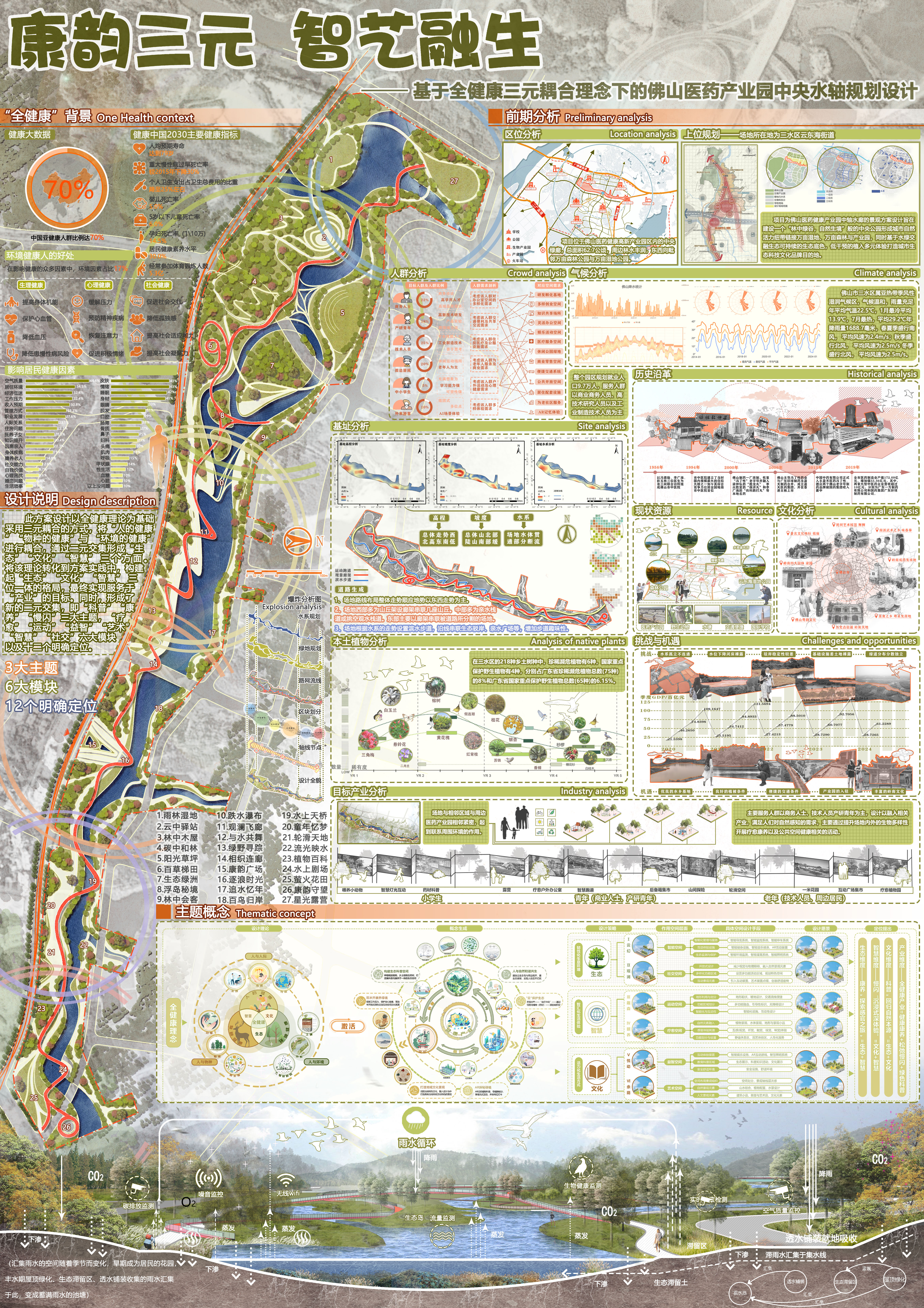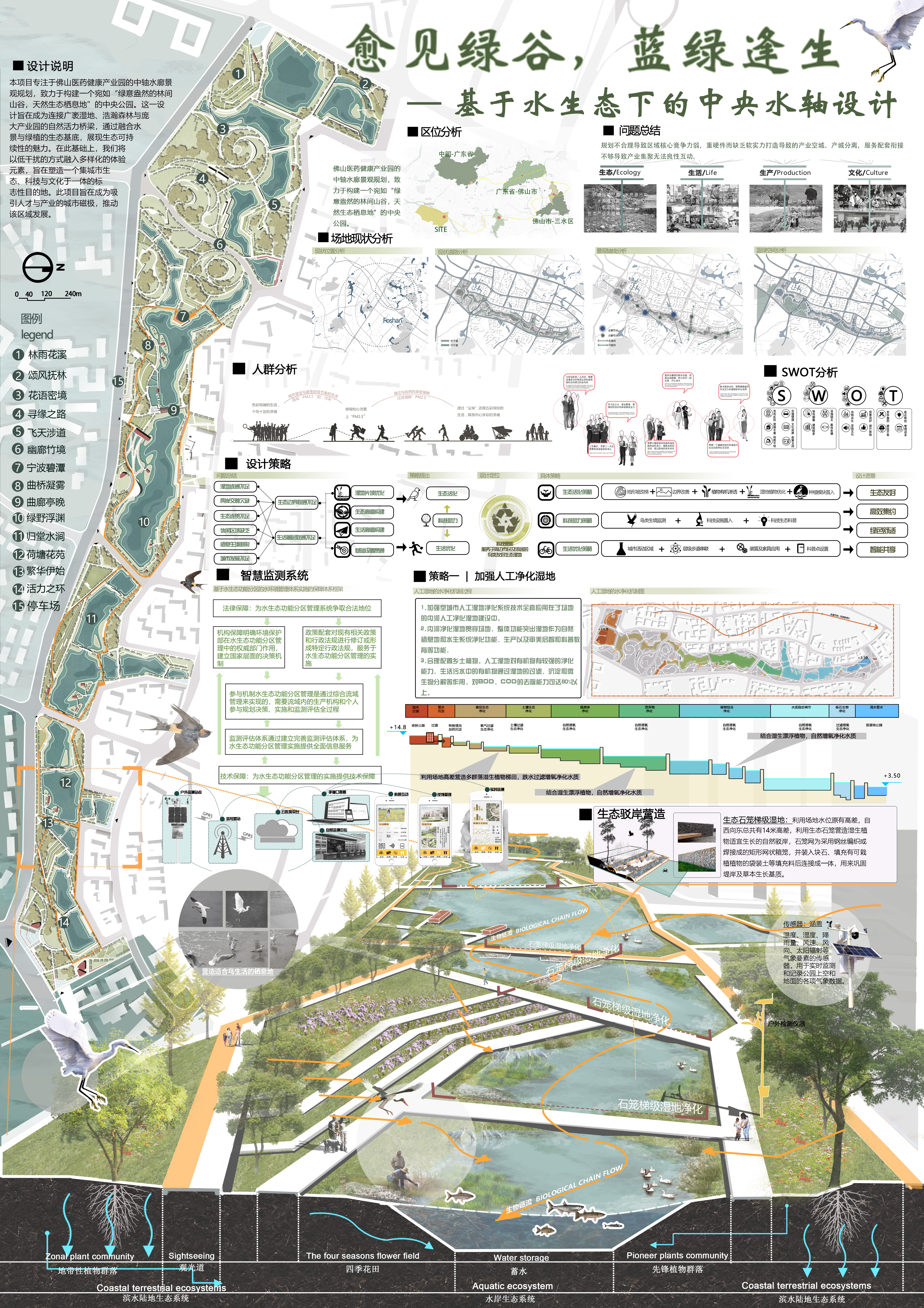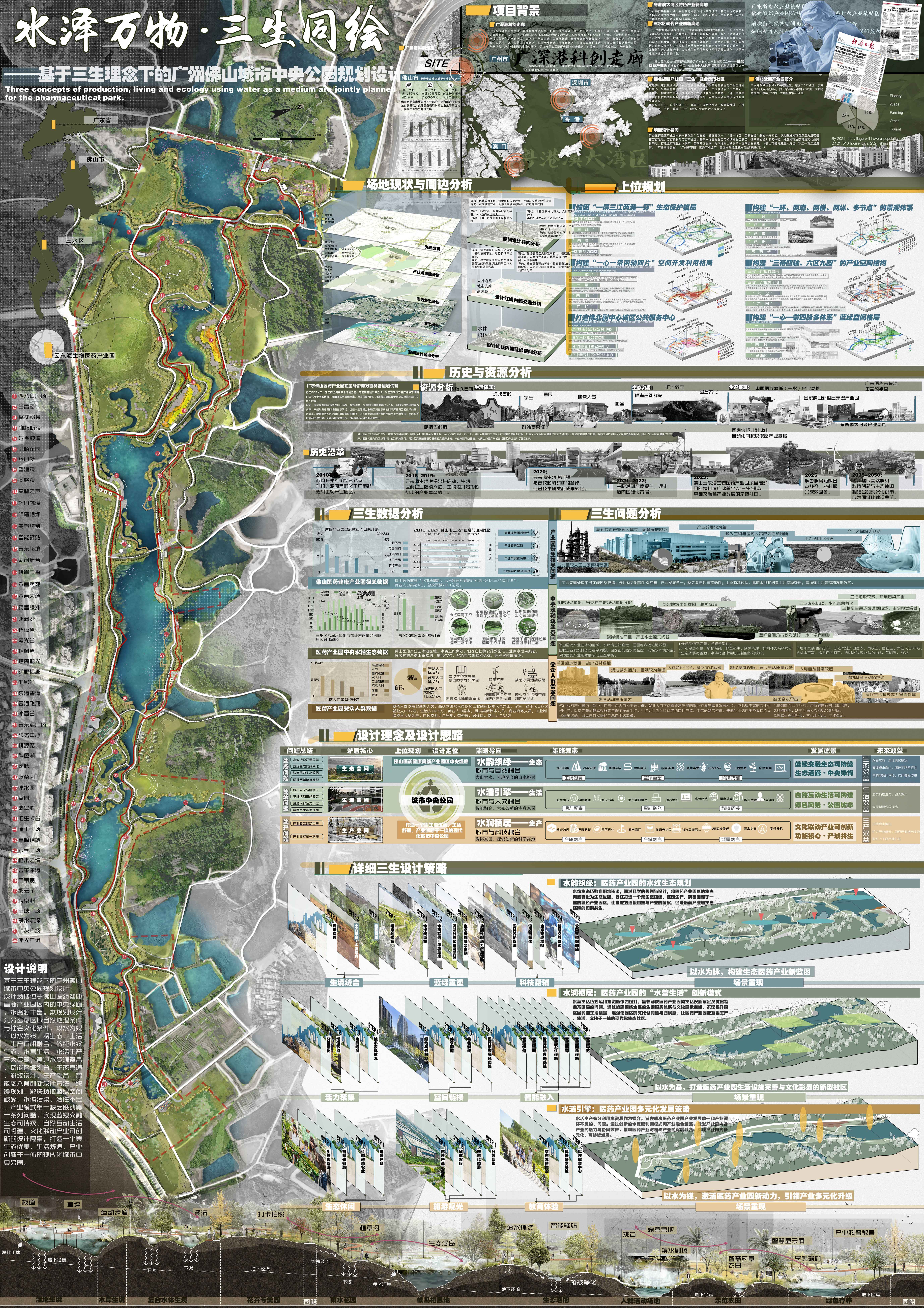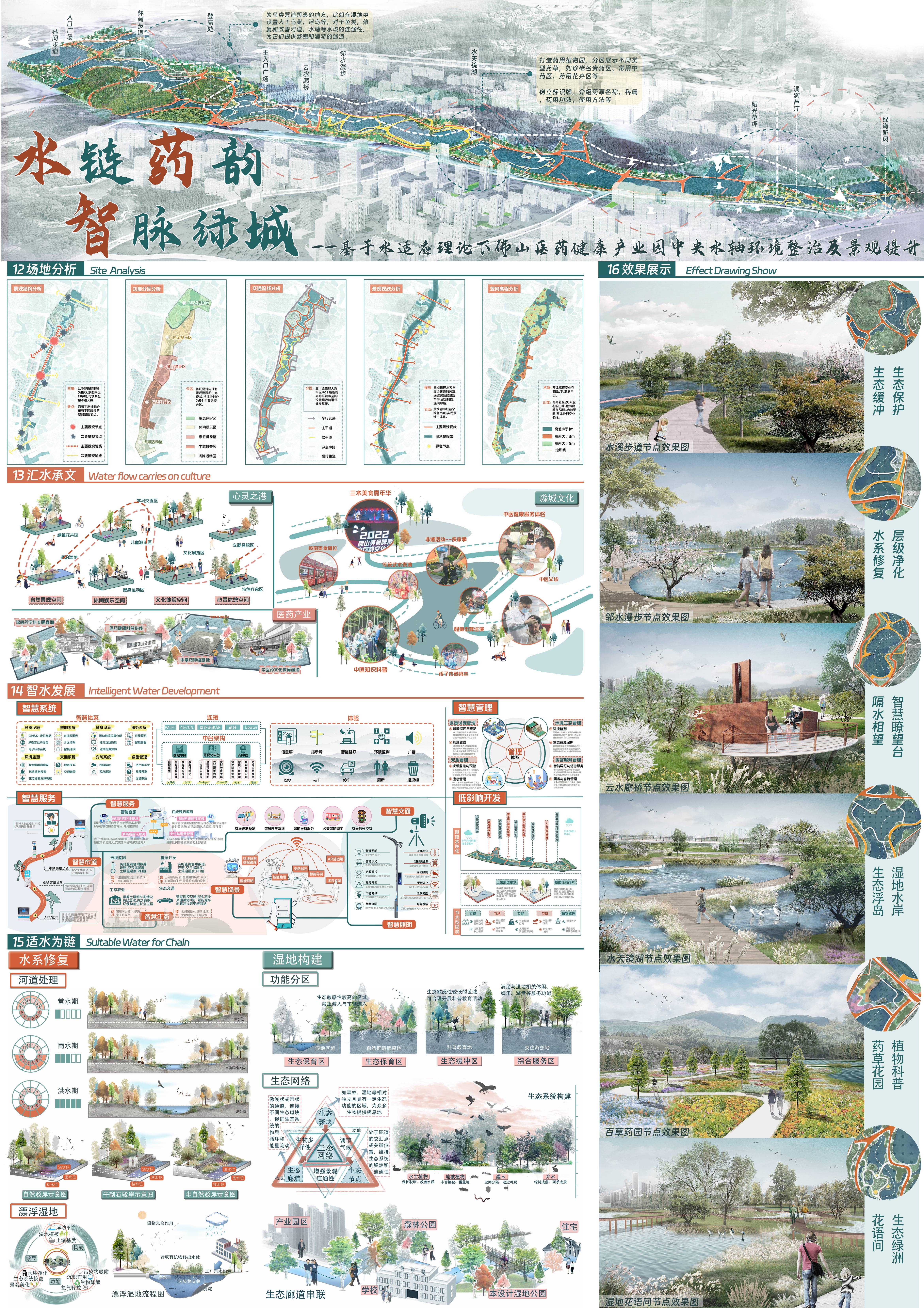 大赛主题:“佛山医药健康产业园中轴水廊的景观方案设计”