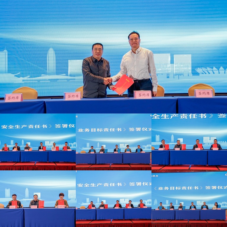 在全场热烈的掌声中,公司党委书记、董事长潘肇英,总裁李从文及相关部门、分子公司、项目部负责人一一上台签署了《安全生产责任书》与《经营责任状》,大家将带着坚定完成经营任务的决心和紧抓安全生产的责任意识奔赴新一年的奋斗征程。