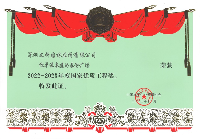 3044永利承建了泰伦广场的园林景观工程,施工范围包含首层室外园林景观工程、下沉广场园林景观工程、屋顶花园园林景观工程等。在履约过程中,公司践行工匠精神,贯彻精品工程建设理念,严抓质量过程管理,保证工程质量可控,打造深圳后海地标性建筑,共同构建世界级滨海城市的天际线,树立了良好企业形象。