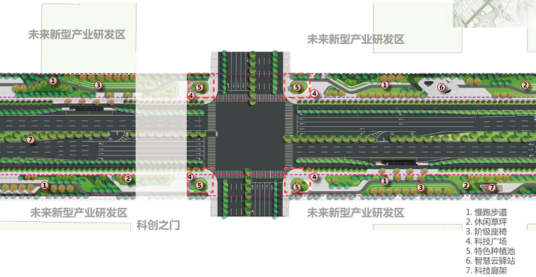 光谷科学岛位于武汉新城中心片区,是光谷科创大走廊核心承载区中的核心创新源。未来一路是贯穿光谷科学岛南北的中央大道,也是片区最先启动的两条对外通道之一。全长约3.5公里,红线宽50-60米,路侧绿地宽15米,绿化总面积44216㎡。