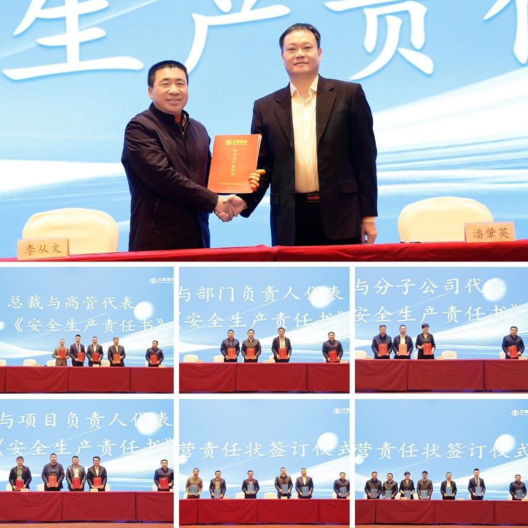 在全场热烈的掌声中,公司党委书记、董事长潘肇英,总裁李从文及相关部门、分子公司、项目部负责人一一上台签署了《安全生产责任书》与《经营责任状》,大家将带着坚定完成经营任务的决心和紧抓安全生产的责任意识奔赴新一年的奋斗征程。