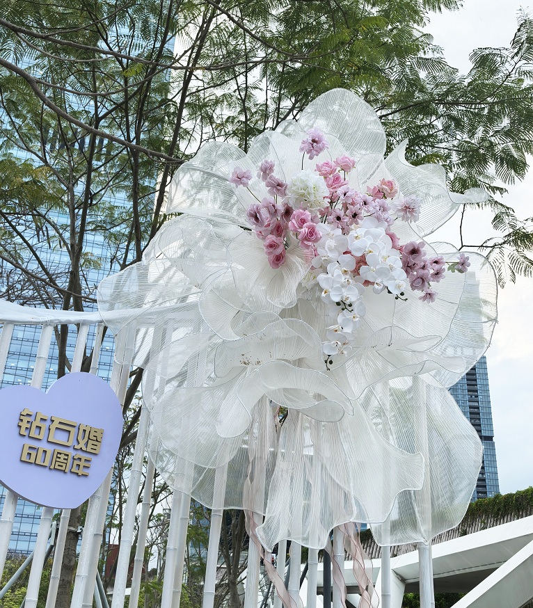 3044永利响应本次大赛主题,参赛作品以“百年之约,合你相守”为设计理念,精心布置从纸婚到钻石婚的爱情之路,契合当代人对婚姻与情感百年好合,幸福美满的深层向往。花卉选用上,设计团队巧妙运用大花飞燕草、百合花、羽扇豆、花烟草、月季、薰衣草、八仙花、姬小菊等象征纯洁、寓意美好的植物,搭配灯光装置营造浪漫氛围,将婚姻元素、生态美学与情感价值融为一体,共同构建了一个关于承诺与坚守的精神场域,向游客传递了爱情的永恒与纯粹,成为本届赛事中极具吸引力的焦点之作。