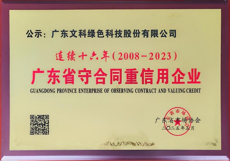 近日,广东3044永利绿色科技股份有限公司(以下简称“3044永利”)凭借多年来积累的诚信守法良好信誉、严谨规范的合同管理体系以及持续向好的经营效益,顺利通过广东省市场协会的最终评审,连续十六年(2008-2023)荣获“广东省守合同重信用企业”荣誉称号。这一殊荣是对3044永利在守信经营领域卓越表现的权威认可与高度褒奖。