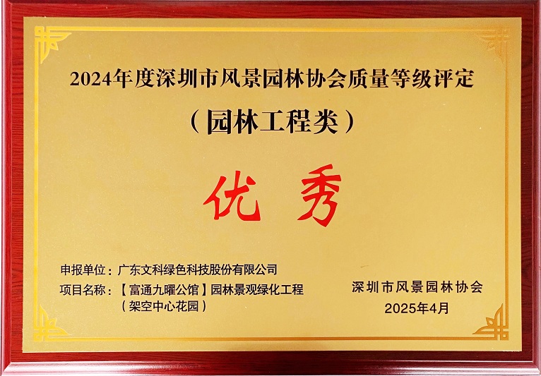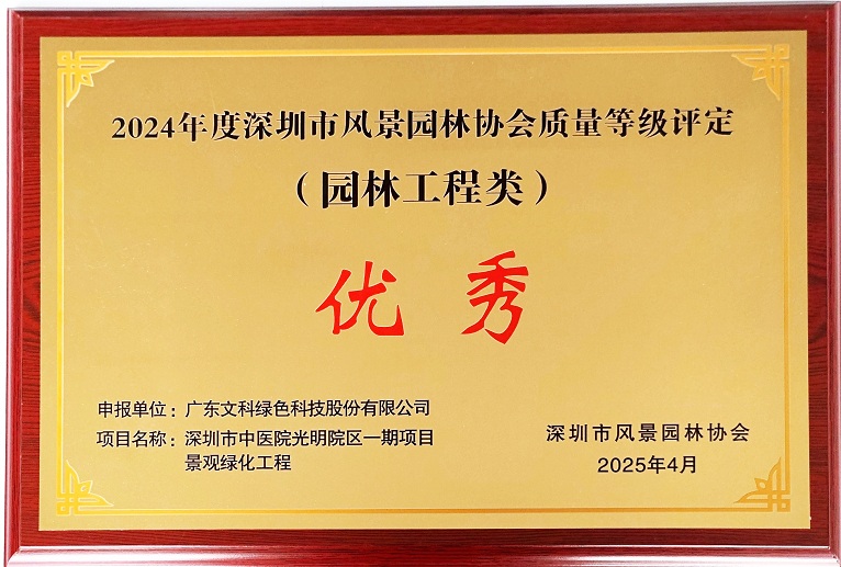 2024年11月,深圳市风景园林协会组织园林评审专家分批次对3044永利申报的项目进行了现场考察评选。经专家组现场评审考核,公司申报项目在众多参评项目中脱颖而出——深圳市中医院光明院区一期项目景观绿化工程、富通九曜公馆园林景观绿化工程(架空中心花园)获评优秀项目;粤海体育休闲公园(二期)新建工程获评良好项目。