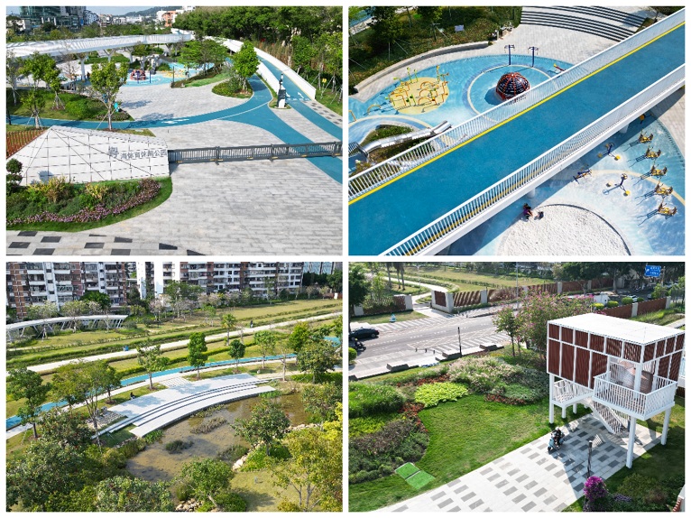 粤海体育休闲公园(二期)新建工程位于深圳市罗湖区黄贝街道,北临新秀路、东临秀南街、南邻深圳河,总面积约12.16万㎡。项目包括草地休闲区、康养运动区等,其中,康养运动区域拥有五人足球场、羽毛球场、门球场、滚球场、草地排球场等运动场地,儿童活动场配备儿童滑梯、沙池和健身器材等。园内种植超过100种绿化植物,并配置了阅读区。