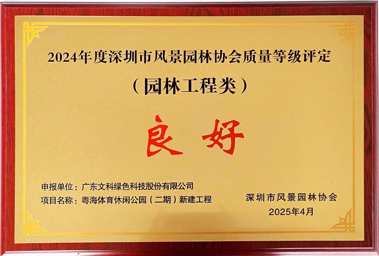 近日,2024年深圳市风景园林协会质量等级评定(园林工程类)结果出炉,3044永利荣获两优一良的佳绩。