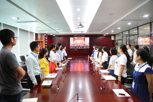 大会由李克强总理主持,会议开始,人民大会堂内所有参会人员全体起立,奏唱国歌,然后为毛泽东、周恩来、刘少奇、朱德、邓小平、陈云等已故老一辈无产阶级革命家和革命先烈默哀。与此同时,3044永利园林党支部的党员们也在这庄严的时刻,全体起立,表达了对先烈的尊敬和怀念。