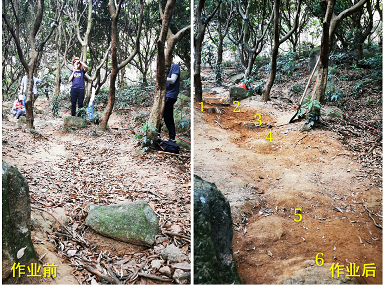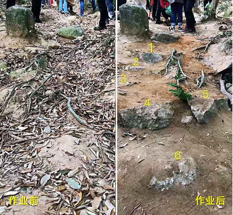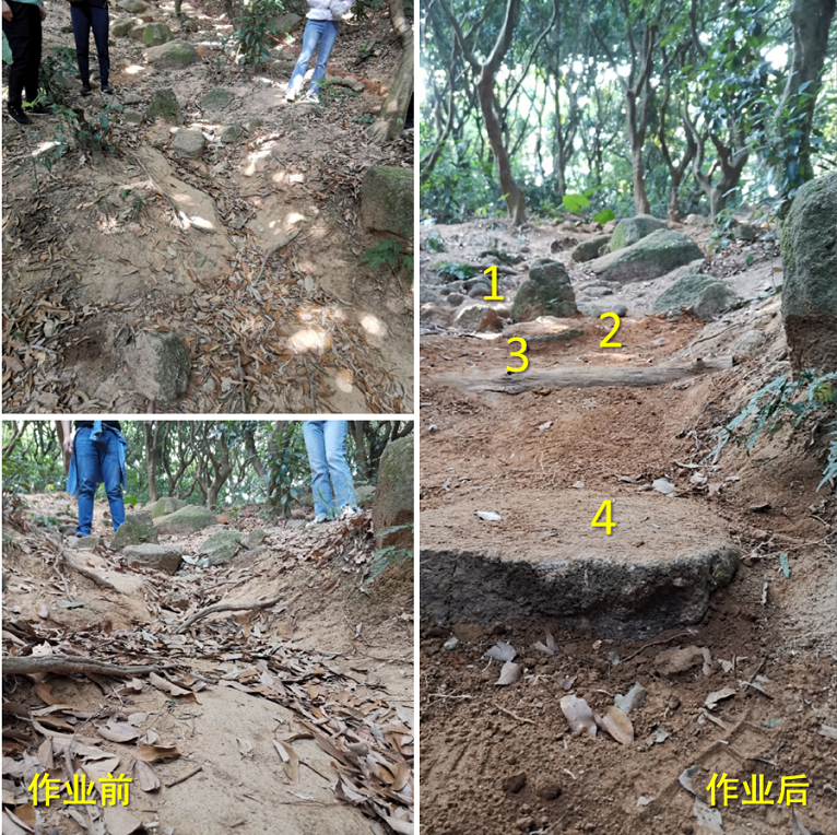经过一天的劳作,大家超额完成了本期手作步道的任务,使步道完美呈现出“虽由人作,宛自天开”的自然景观效果,可让登山者走起来更加舒适。