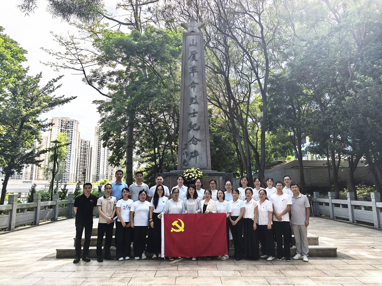 绿树苍翠,山厦革命烈士纪念碑庄严肃穆。全体党员整齐列队,肃立默哀,深切缅怀革命先烈。通过聆听讲解,同志们了解到,从大革命时期、国内革命战争时期到抗日战争、解放战争时期,山厦人民在党的领导下,为人民解放事业做出了突出贡献。纪念碑上刻着为革命英勇献身的6位山厦籍英烈以及曾在山厦一带革命活动过的11位烈士芳名,他们用鲜血和生命筑起了一座不朽的丰碑。革命先烈的英雄壮举和牺牲精神,让在场党员无不动容,受到深刻的精神洗礼和党性教育。